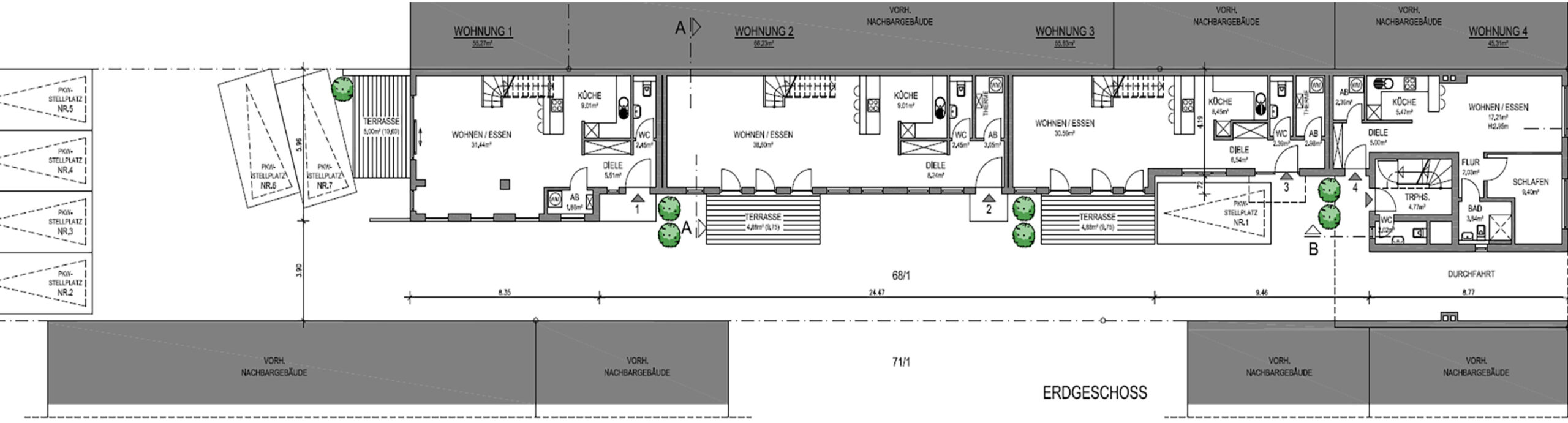 Umnutzung ehemaliger Raumausstatter in 15 Wohneinheiten. Hiervon werden 11 Wohneinheiten barrierefrei ausgebildet. - Schlitz bei Fulda